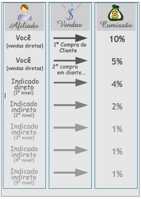 Indicando novos afiliados, por cada venda indireta, ou seja, por cada veja que seu afiliado fizer você ganha comissões de 4% até 1%, de acordo o nível que ele se encontra na sua rede.